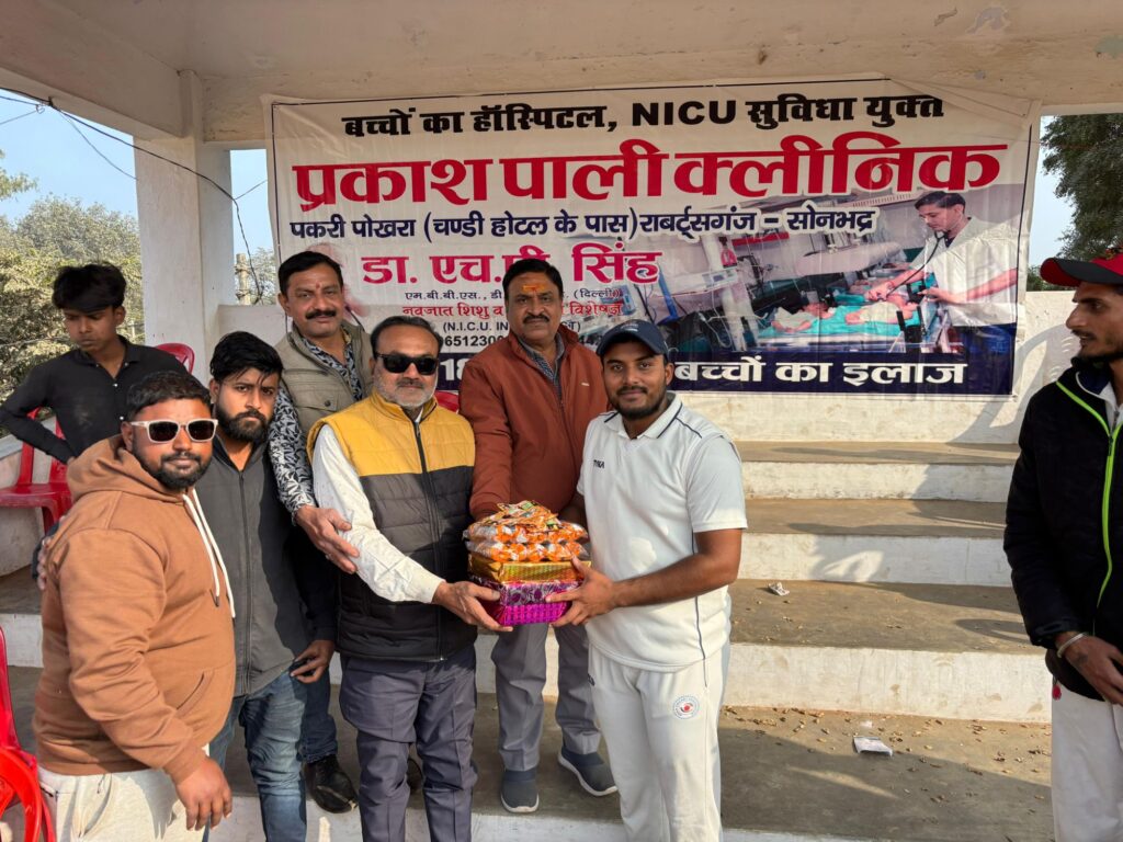 इस तरफ भभुआ की टीम ने भदोही के टीम को 9 विकेट से पराजित किया। भभुआ की टीम के समरजीत को मैन ऑफ द मैच का पुरस्कार मुख्य अतिथि सुनील जायसवाल के द्वारा पुरस्कृत किया गया। आज के मैच के निर्णायक गौस मोहम्मद खां व इकबाल अंसारी रहे।