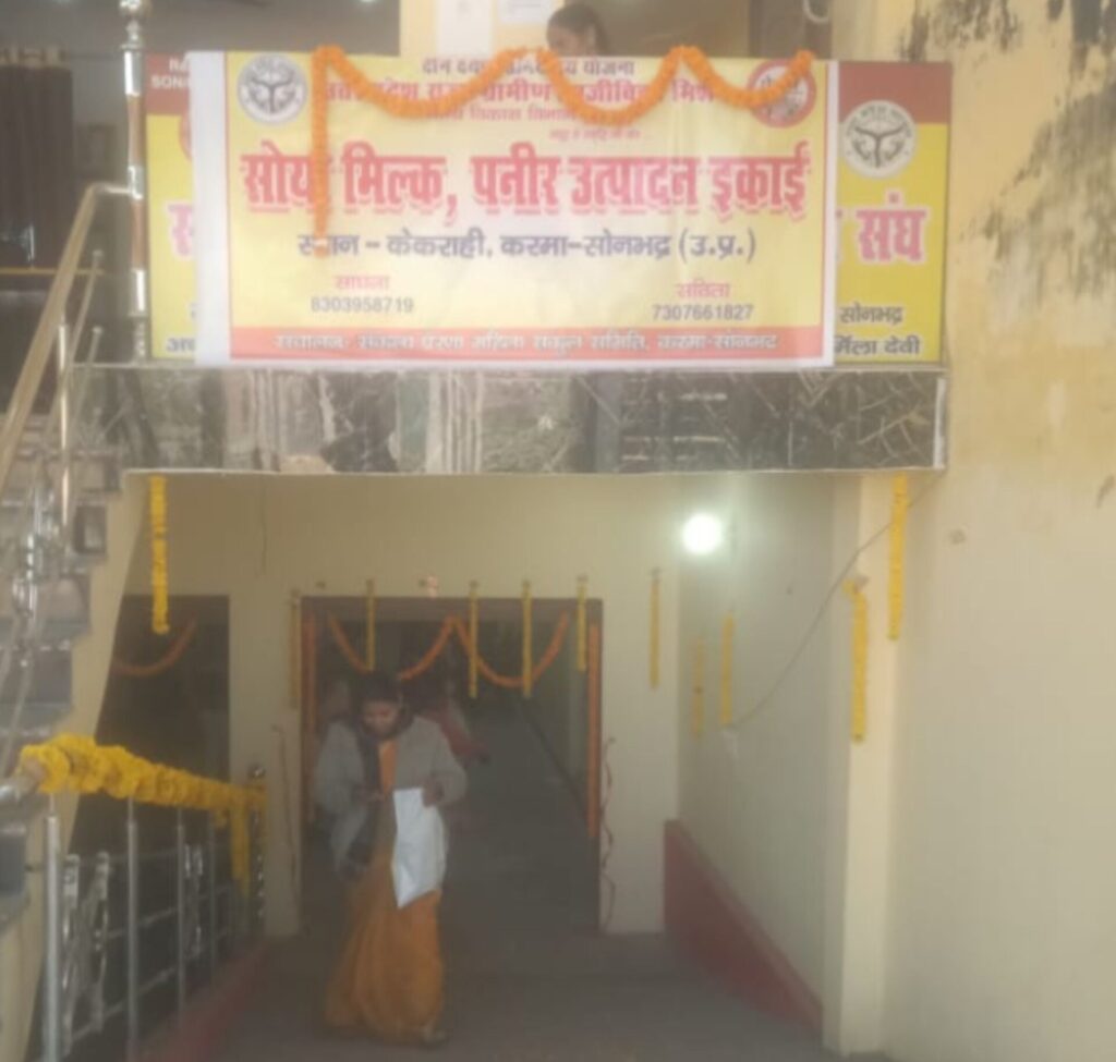 राष्ट्रीय ग्रामीण आजीविका मिशन के तहत विकास खण्ड करमा के पापी क्लस्टर के केकराही में गुरुवार को समूह सखियों द्वारा सोया मिल्क,पनीर प्लांट लगाया गया। उक्त अवसर पर जिला विकास अधिकारी हेमंत कुमार सिंह द्वारा बताया गया कि खण्ड विकास अधिकारी के सहयोग से समूह की महिलाओं को सोया पनीर प्लांट स्थापित कराया गया है यह सोनभद्र में पहला ऐसा प्लांट है जिसमें समूह की महिलाओं द्वारा सोया प्लांट से दूध दही एवं पनीर बनाकर बाजार में विक्रय किया जाएगा ।
