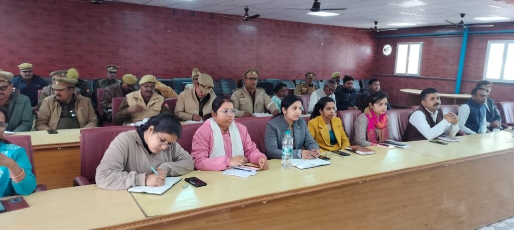 पुलिस अधीक्षक के निर्देशन में आज रिजर्व पुलिस लाइन चुर्क,जनपद सोनभद्र के सभागार कक्ष में क्षेत्राधिकारी नगर रणधीर मिश्रा की अध्यक्षता में एसजेपीयू एवं एएचटीयू की मासिक समीक्षा एवं समन्वय बैठक आयोजित गई। उक्त बैठक में कानून का उल्लंघन करने वाले बच्चों के बारें में, देख रेख एवं संरक्षण वाले बालकों के बारे में एवं बाल विवाह मुक्त भारत के संबंध में 100 दिवसीय जन जागरूकता कार्यक्रम, व बाल विवाह मुक्त भारत की शपथ के दिलाया गया,बालको के विरुद्ध हो रहे अपराध के रोकथाम के संबंध मे बनायी गई कार्ययोजना बनाई गई एवं जे0जे0एक्ट0 ,पॉक्सों एक्ट के मुकदमों में पीड़िता को बाल कल्याण समिति के समक्ष प्रस्तुत करने व पॉक्सो के मामलों में प्रारूप (क) व प्रारूप (ख) भरने तथा किशोर न्याय बोर्ड से निर्गत सम्मन तामिला, बाल कल्याण पुलिस अधिकारी/विवेचक के समक्ष आ रही समस्याएं इत्यादि के संबंध में विस्तारपूर्वक चर्चा की गई।