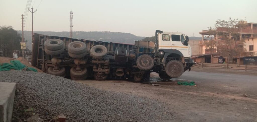 चोपन थाना गुरमा पुलिस चौकी क्षेत्र के अन्तर्गत मंगलवार शाय 5 बजे के लगभग मारकुंडी मुख्य राज मार्ग बैराज मोड़ के समीप बालू लोड ट्रक अनियंत्रित होकर पलटने से चालक को हल्की फुल्की चोटों के साथ सुरक्षित बच गया।