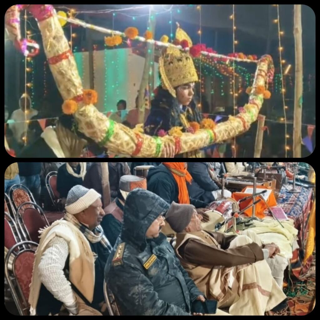 श्री राम लीला के क्रम में धनुष यज्ञ के दिन पूरे मिथिला नगरी में उत्सव का वातावरण रहा समारोह प्रारंभ होने से पूर्व महाराज जनक ने अपने बंदियों को भेज कर महर्षि विश्वामित्र के साथ श्री राम लक्ष्मण को स्वयंवर में बुला लिए विभिन्न देशों से राजा स्वयंवर में पधारे हुए थे सभी उपस्थित राजा गण अपने बाल का गुणगान करते हुए धनुष तोड़ने का झूठा दंभ भर रहे थे इसी बीच रावण एवं बाणासुर का आगमन होता है दोनों का वाक्य युद्ध सबको रोमांचित करता रहा इसी बीच विदूषक राजा ने अपने प्रश्न के माध्यम से सबका मनोरंजन किया।
