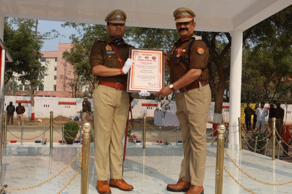 महाकुंभ–2025 ड्यूटी में सराहनीय सेवा हेतु पुलिस अधिकारियों/कर्मचारियों को “कुम्भ सेवा मेडल” एवं प्रशस्ति पत्र प्रदान करने के सम्बन्ध में- अवगत कराना है कि वर्ष–2025 में महाकुंभ ड्यूटी के दौरान उत्कृष्ट, सराहनीय एवं अनुकरणीय सेवाएं प्रदान करने वाले पुलिस अधिकारियों/कर्मचारियों को मुख्यमंत्री उत्तर प्रदेश द्वारा “कुम्भ सेवा मेडल” एवं प्रशस्ति पत्र प्रदान किए जाने हेतु नामित किया गया था। आज दिनांक 24.01.2026 को प्रातः 08:00 बजे पुलिस लाइन परेड ग्राउंड सोनभद्र में, उक्त सम्मान को पुलिस अधीक्षक अभिषेक वर्मा द्वारा, नामित अधिकारियों/कर्मचारियों को कुम्भ सेवा मेडल एवं प्रशस्ति पत्र प्रदान किया गया।