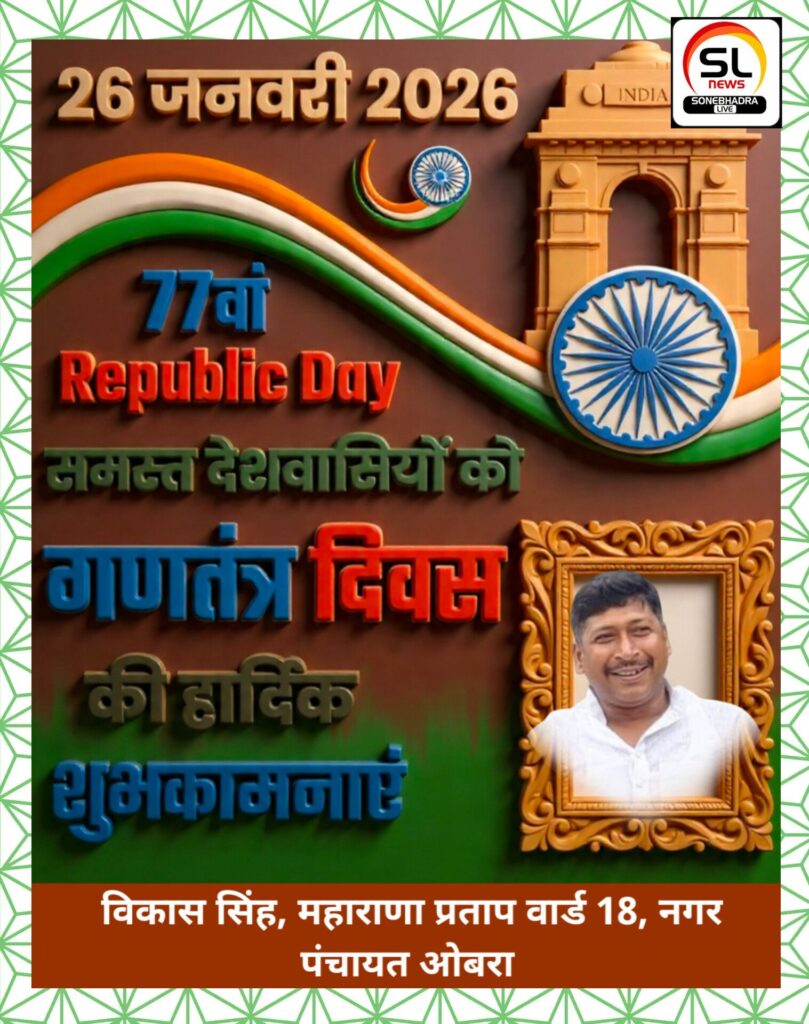 “क्षेत्र व देश में रहने वाले हम भारत के लोग उत्साह के साथ गणतन्त्र दिवस का उत्सव मनाने जा रहे हैं। मैं आप सभी को गणतन्त्र दिवस के राष्ट्रीय पर्व की हार्दिक बधाई देता हूं” विकाश सिंह, महाराणा प्रताप वार्ड नंo18, नगर पंचायत ओबरा