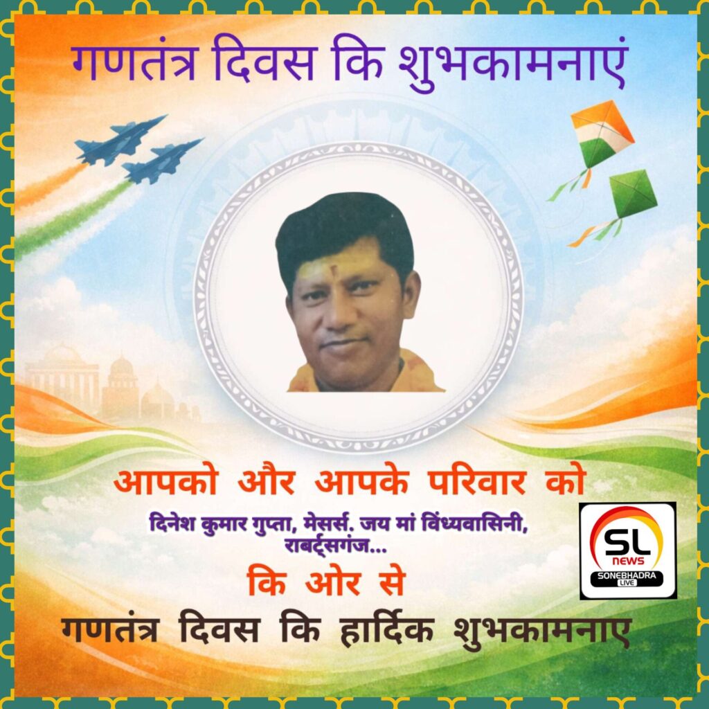 “क्षेत्र व देश में रहने वाले हम भारत के लोग उत्साह के साथ गणतन्त्र दिवस का उत्सव मनाने जा रहे हैं। मैं आप सभी को गणतन्त्र दिवस के राष्ट्रीय पर्व की हार्दिक बधाई देता हूं” दिनेश कुमार गुप्ता, मेसर्स. जय मां विंध्यवासिनी, राबर्ट्सगंज