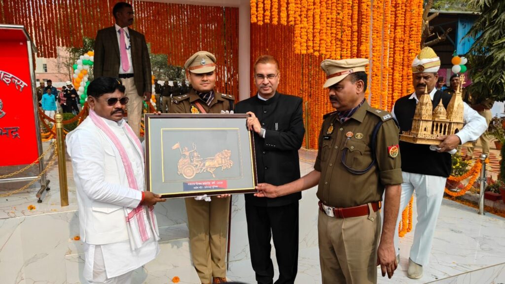 Sonbhadra। आज 77वें गणतंत्र दिवस के अवसर पर रिजर्व पुलिस लाइन चुर्क में भव्य रैतिक परेड का आयोजन किया गया। कार्यक्रम के मुख्य अतिथि समाज कल्याण राज्यमंत्री, उत्तर प्रदेश संजीव कुमार गोंड द्वारा ध्वजारोहण कर राष्ट्रगान के साथ राष्ट्रध्वज को सलामी दी गई।