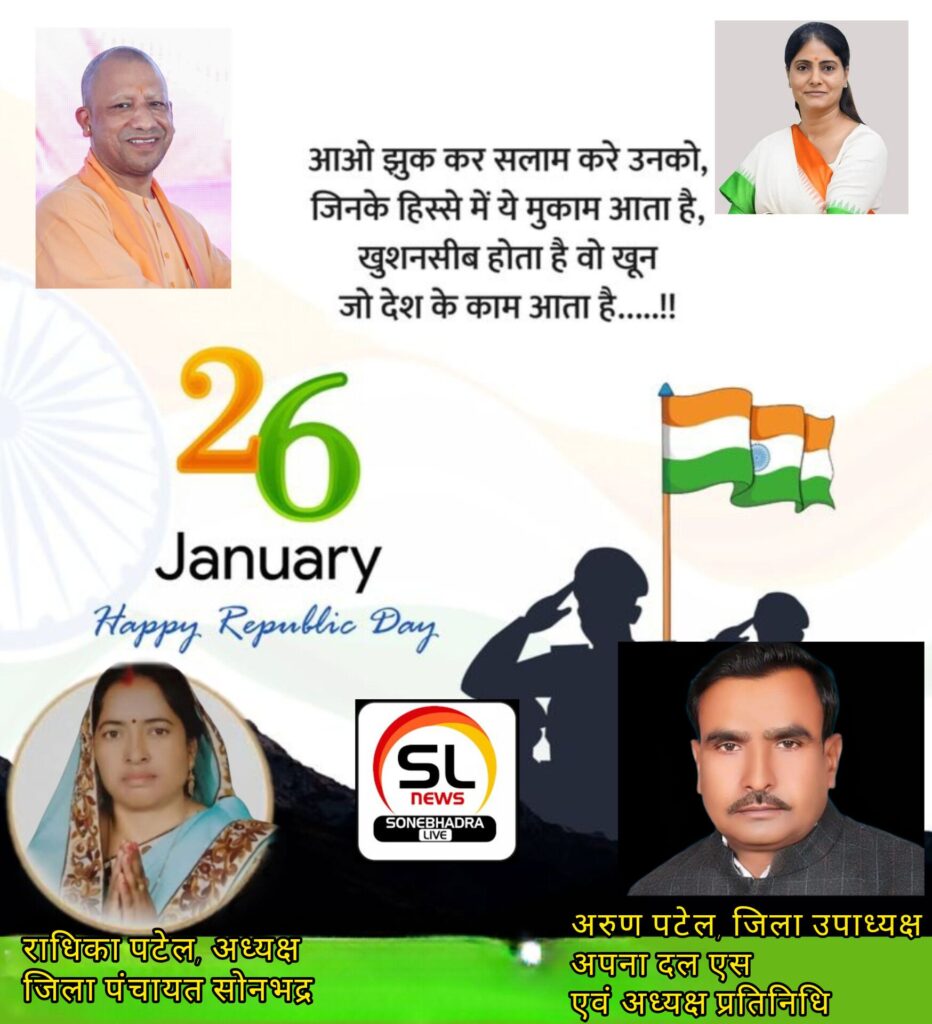 “क्षेत्र व देश में रहने वाले हम भारत के लोग उत्साह के साथ गणतन्त्र दिवस का उत्सव मनाने जा रहे हैं। मैं आप सभी को गणतन्त्र दिवस के राष्ट्रीय पर्व की हार्दिक बधाई देता हूं” अरुण पटेल, जिला उपाध्यक्ष अपना दल एस एवं अध्यक्ष प्रतिनिधि