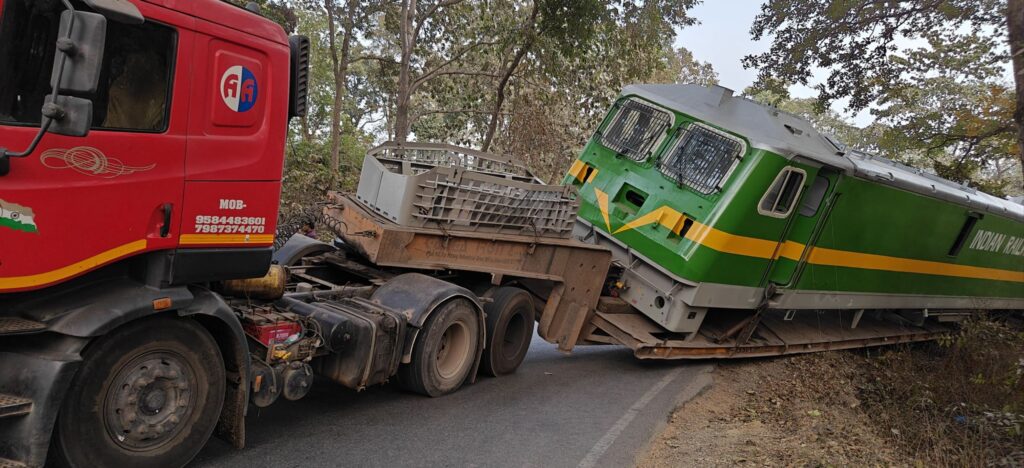 रेणुकूट–बीजपुर मार्ग पर रनटोला गांव के समीप शुक्रवार की शाम उस समय अफरा-तफरी मच गई, जब ट्रेन का इंजन लादकर जा रहा एक भारी ट्रेलर अनियंत्रित होकर सड़क से उतर गया। गनीमत रही कि ट्रेलर खाई में पलटने से बाल-बाल बच गया, जिससे एक बड़ा हादसा टल गया। जानकारी के अनुसार भिलाई से ट्रेन का इंजन लेकर वाराणसी जा रहा ट्रेलर रनटोला गांव के पास सामने से आ रहे एक तेज रफ्तार टैंकर को बचाने के प्रयास में अनियंत्रित हो गया। अचानक संतुलन बिगड़ने से ट्रेलर का पिछला हिस्सा सड़क छोड़कर किनारे की ओर चला गया। सड़क के किनारे गहरी खाई होने के कारण स्थिति बेहद गंभीर हो गई, लेकिन चालक की सूझबूझ और किस्मत से ट्रेलर खाई में गिरने से बच गया।