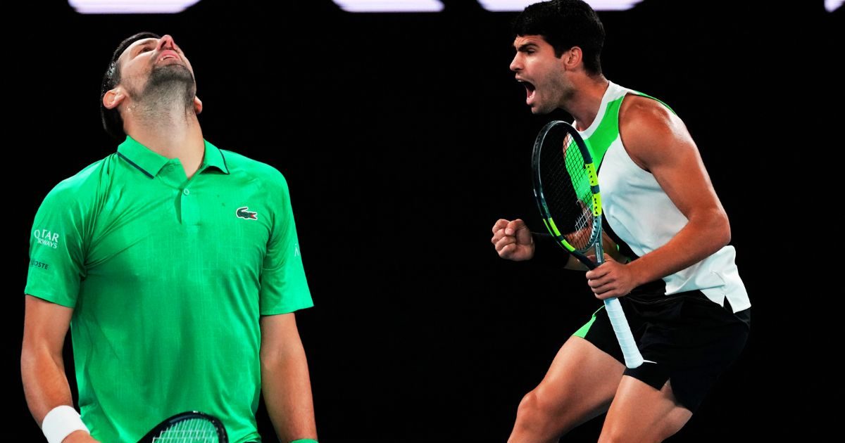 Australian Open Final Highlights: स्पेन के कार्लोस अल्कराज ने नोवाक जोकोविच को हराकर ऑस्ट्रेलियन ओपन 2026 जीता. कांटे की टक्कर में अल्कराज ने 2-6. 6-2, 6-3, 7-5 से जीत हासिल कर अपना करियर स्लैम पूरा किया. चारों ग्रैंड स्लैम जीतने वाले अब अल्कराज सबसे कम उम्र के खिलाड़ी बन गए हैं. उन्होंने अपने ही देश के पूर्व टेनिस स्टार राफेल नडाल का रिकॉर्ड तोड़ा.
