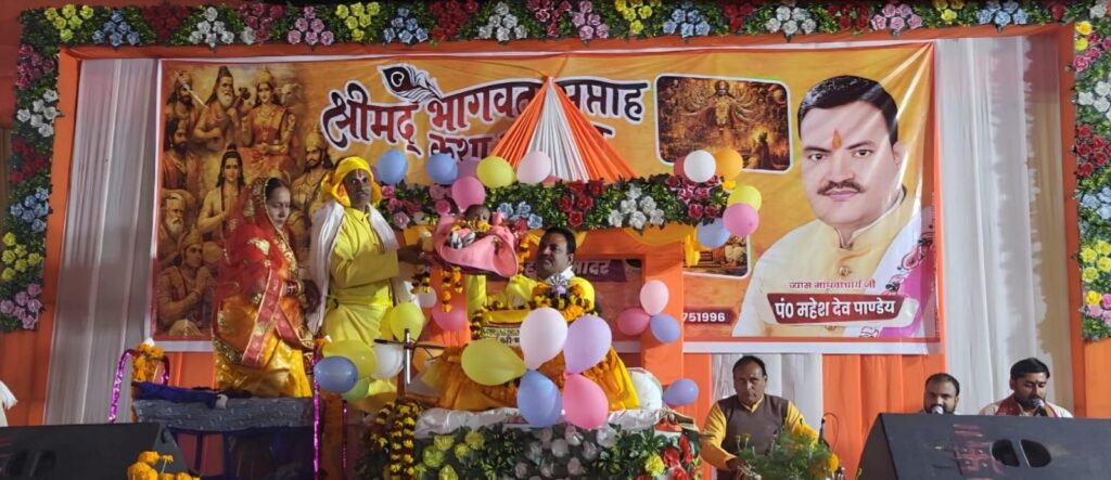 स्थानीय श्री राम नगर स्थित ॐ श्री सदाशिव महादेव मंदिर प्रांगण में चल रहे श्रीमद्भागवत सप्ताह ज्ञान यज्ञ महोत्सव के चौथे दिन भक्ति की अविरल धारा बही। कथा व्यास माधवाचार्य पं. महेशदेव पांडेय जी ने भगवान श्री कृष्ण के जन्मोत्सव का इतना सजीव वर्णन किया कि पूरा पंडाल ‘हाथी घोड़ा पालकी, जय कन्हैया लाल की’ के जयघोष से गूंज उठा।