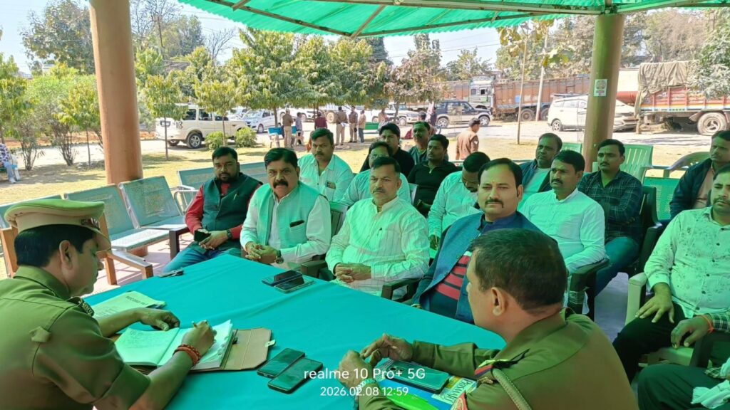 थाना चोपन परिसर में प्रभारी निरीक्षक अखिलेश कुमार मिश्रा की अध्यक्षता में पीस कमेटी की बैठक आयोजित की गई। बैठक में क्षेत्र के ट्रांसपोर्ट मोटर वाहन मालिक, गणमान्य नागरिक एवं पुलिस अधिकारी उपस्थित रहे। बैठक का मुख्य उद्देश्य यातायात व्यवस्था को सुदृढ़ करना एवं सड़क दुर्घटनाओं पर प्रभावी नियंत्रण स्थापित करना रहा।