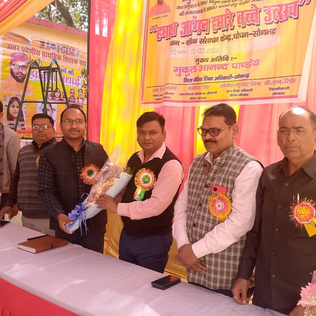 हमारा आंगन हमारे बच्चे के उत्सव में मुख्य अतिथि के रूप में ओबरा तहसीलदार नरेंद्र राम एवं विशिष्ट अतिथि के रूप में चकबंदी अधिकारी प्रभाकर सिंह एवं बाल परियोजना अधिकारी मनोज कुमार की गरिमामयी उपस्थिति रही ।इस हमारा आंगन – हमारे बच्चे उत्सव का संयोजन खण्ड शिक्षा अधिकारी लोकेश कुमार मिश्र द्वारा किया गया। कार्यक्रम में तहसीलदार द्वारा हमारा आंगन हमारे बच्चे कार्यक्रम के द्वारा बच्चों के विद्यालय में सहभागिता, नियमित उपस्थिति शत प्रतिशत नामांकन के लिए विद्यालय के आकर्षक वातावरण पर विस्तार से प्रकाश डाला।