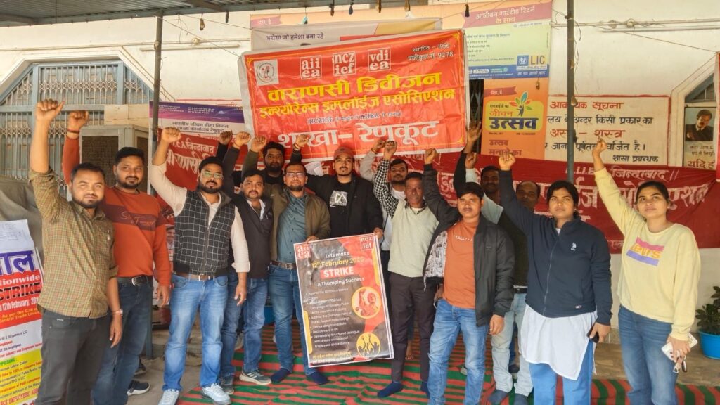 स्थानीय भारतीय जीवन बीमा निगम कार्यालय पर गुरुवार को बीमा कर्मियों ने अपनी विभिन्न मांगों को लेकर हड़ताल की। ऑल इंडिया इंश्योरेंस इंप्लाइज एसोसिएशन के बैनर तले वाराणसी डिविजन के बीमा कर्मियों ने पूरी तरह से कामकाज बंद कर तालाबंदी कर दी। हड़ताल के दौरान कर्मचारियों ने जोरदार नारेबाजी करते हुए अपनी मांगों को पूरा करने की मांग उठाई।