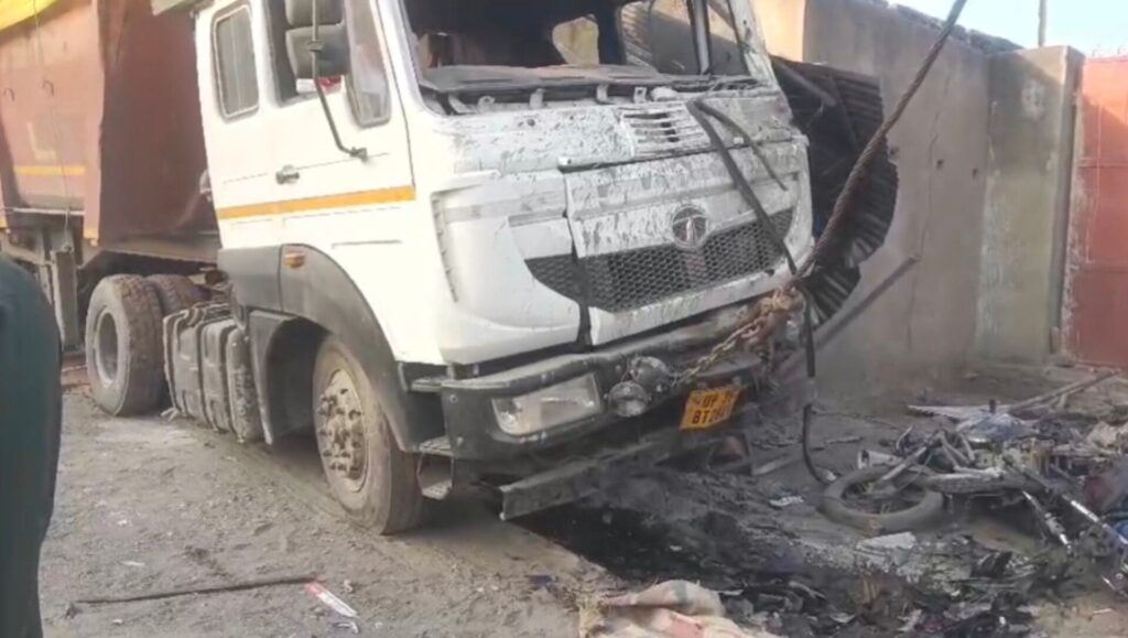 __राखड़ लदी ट्रेलर ने कई मकान, चार बाइक और कार को रौंदा