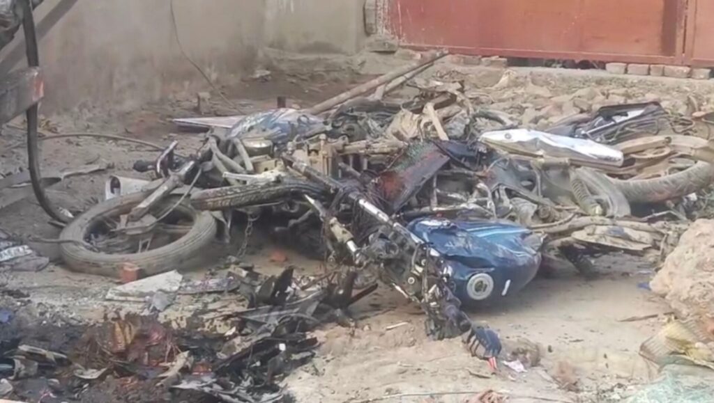 __मकान के बाहर लगी लोहे की सीढ़ी, टीन शेड, निर्माण कार्य के लिए रखा ईंट-बालू-सीमेंट भी हुआ क्षतिग्रस्त
