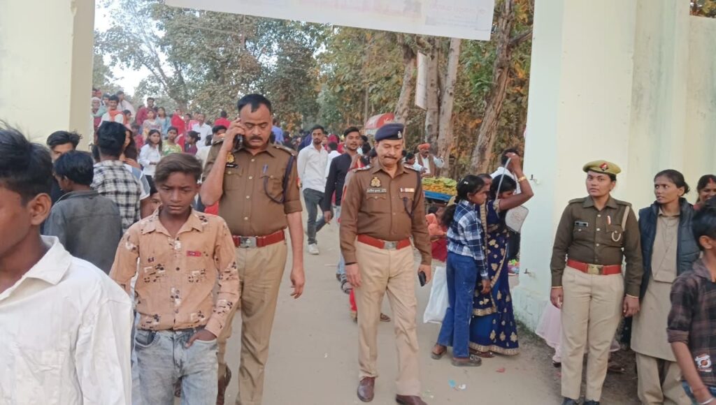 सुरक्षा के दृष्टि से अनिल कुमार क्षेत्राधिकारि राजेश कुमार राय कोतवाली प्रभारी निरीक्षक धर्मेंद्र कुमार सिंह चोकी इंचार्ज हरिकेश आजाद मय पुलिस बल के साथ मेले का भ्रमण करते रहे