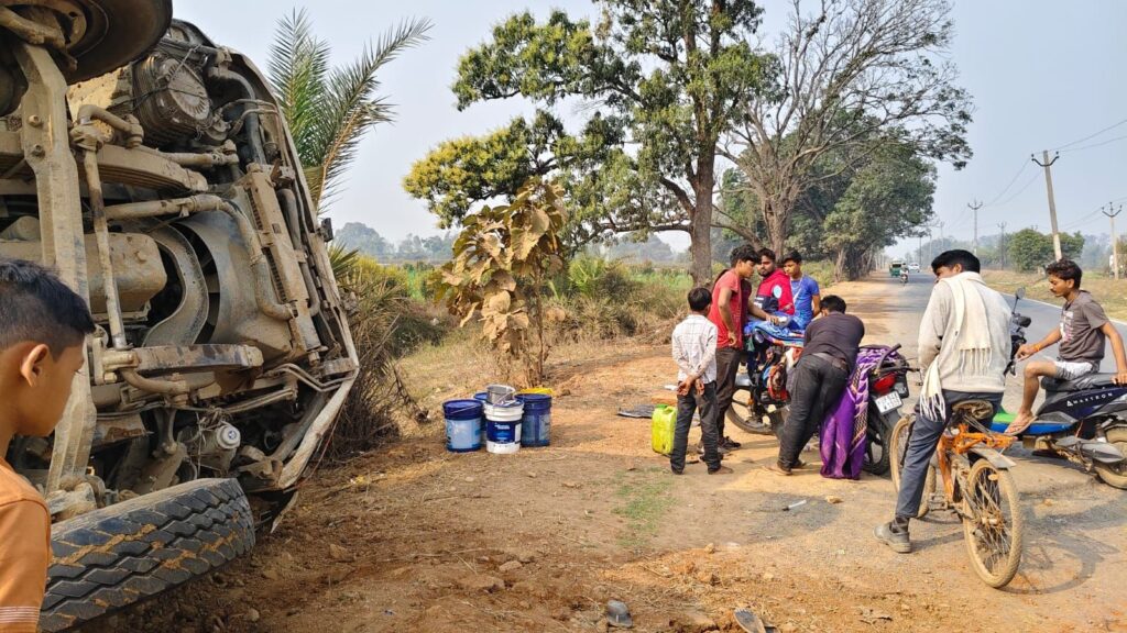 घोरावल खुटहा बाईपास रोड पर बृहस्पतिवार बालू लदा हाईवा पलट गया। जानकारी के अनुसार रमाकांत (35), निवासी रॉबर्ट्सगंज बालू लदा हाईवा लेकर घोरावल मार्केट के मुक्खा रोड पर जा रहा था। खुटहा बाईपास के रास्ते से जाते समय हर घर नल जल योजना के तहत चल रहे काम के कारण बने गड्ढे में फंस कर गाड़ी पलट गया। हादसे में हाईवा चालक घायल हो गया। हाईवा चालक ने पास के निजी अस्पताल में उपचार कराया। ग्रामीणों ने बताया कि हर घर नल योजना के तहत हुए कार्यों में लापरवाही हो रही है।सड़कों या सड़क की पटरियों पर गड्ढे बने हुए हैं, जिन्हें ठेकेदार द्वारा सही नहीं कराया जाता। इससे आए दिन हादसे होते रहते हैं।