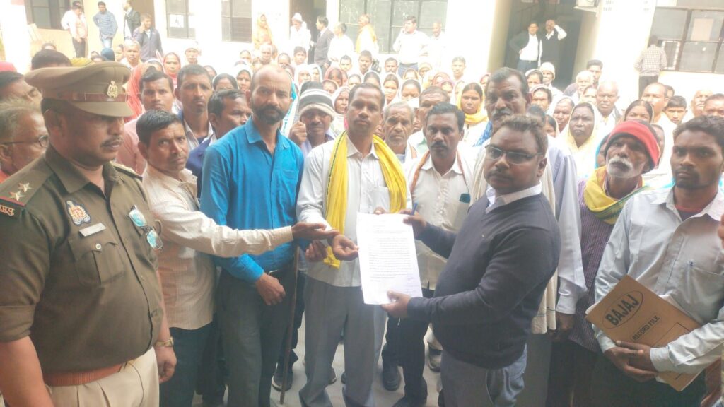 संपूर्ण समाधान दिवस में शनिवार को ब्लाक क्षेत्र म्योरपुर के ग्राम पंचायत फाटपखना के कोटेदार का लाइसेन्स निरस्त करके नया कोटेदार नियुक्ति कराने एवं कोटेदार द्वारा अंगूठा लगाकर पैसा निकालने का आरोप लगाते हुए उपजिलाधिकारी के नाम एक शिकायती पत्र ग्राम प्रधान लक्ष्मण प्रसाद के नेतृत्व में दर्जनों की संख्या में महिला पुरुष ग्रामीणों ने तसिलदार अंजनी गुप्ता को दिया।