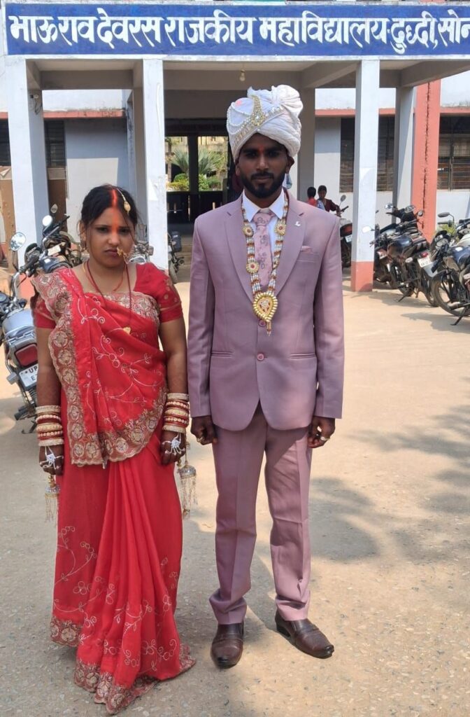 आपको बता दें कि शनिवार को दुद्धी तहसील मुख्यालय के बी आर डी पीजी कॉलेज में एक अनोखा और प्रेरणादायक दृश्य देखने को मिला। यहां एक दुल्हन सात फेरे लेने के कुछ ही समय बाद,प्रियंका अपने पति के साथ सीधे परीक्षा केंद्र पहुंची और दुल्हन के जोड़े में ही अपनी परीक्षा दी।