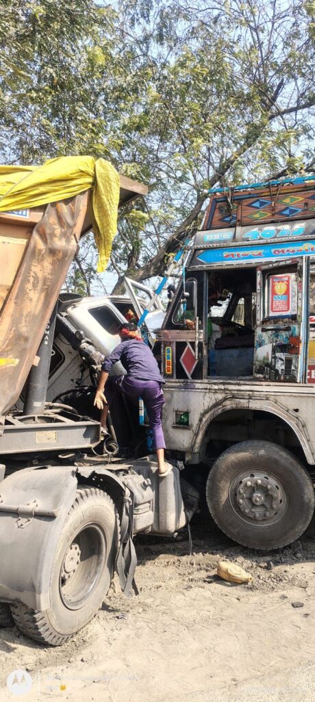 __तेज रफ्तार ट्रक ने खड़ी ट्रेलर को मारी टक्कर, केबिन में फंसा चालक