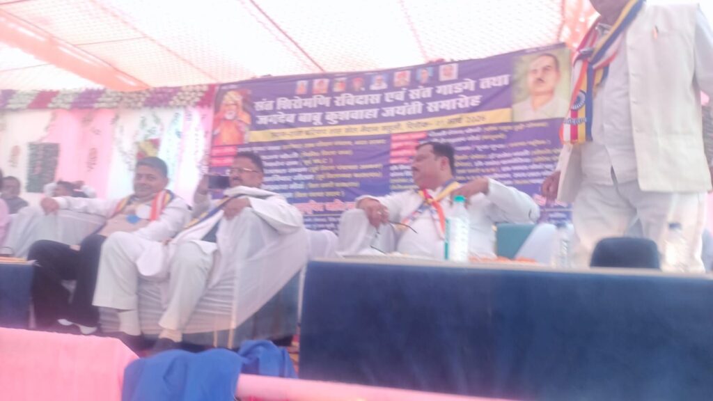 रविवार को महुली खेल मैदान में संत शरोमणि रविदास जयंती, संत गाडगे बाबा जयंती तथा जगदेव बाबू कुशवाहा जयंती का आयोजन ब्लॉक प्रमुख रंजना चौधरी की अध्यक्षता में भव्य रूप से किया गया।