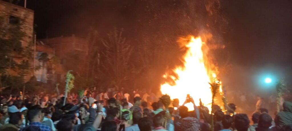 इससे पूर्व कस्बे के पंचदेव मंदिर से पारंपरिक रूप से डीजे की जोरदार धुनों पर गाते-बजाते जोगियों अड़भंगियो का दल प्रमुख मार्गों से होता हुआ मां काली मंदिर पहुंचा, जहां जुलूस का समापन हुआ। होलिका दहन स्थल पर हजारों की भीड़ उमड़ पड़ी। लोगों ने बड़े उत्साह से भाग लिया, पूजा-अर्चना की और एक-दूसरे को होली की हार्दिक शुभकामनाएं दीं।