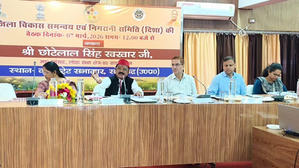 Sonbhadra । जिला विकास समन्वय और निगरानी समिति के अध्यक्ष/सांसद छोटेलाल खरवार की अध्यक्षता में आज कलेक्ट्रेट सभागार में जिला विकास समन्वय और निगरानी समिति (दिशा) की बैठक की गयी। बैठक में दिशा समिति की पूर्व बैठक के कार्यवृत्त की अनुपालन आख्या पर चर्चा की गयी। मा०