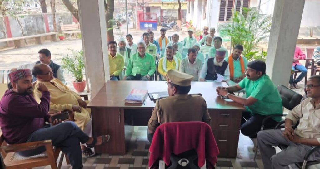 थाना परिसर में शनिवार को थानाध्यक्ष राम दरस राम की अध्यक्षता में संपन्न हुई पीस कमेटी की बैठक में आगामी ईद-उल-फितर , हिंदू नववर्ष, नवरात्रि ,रामनवमी को लेकर चर्चा हुई जिसमें ईदगाह, मंदिर ,मस्जिद आसपास साफ सफाई व पानी सप्लाई को लेकर चर्चा हुई ।