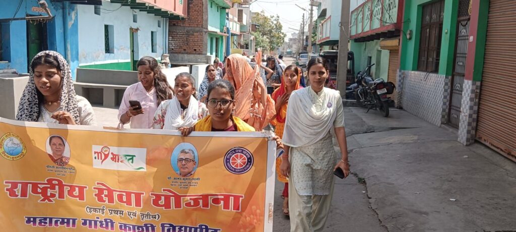 महात्मा गांधी काशी विद्यापीठ एनटीपीसी परिसर शक्ति नगर राष्ट्रीय सेवा योजना इकाई प्रथम एवं तृतीय के तत्वाधान में दिनांक 13 मार्च 2026 को सात दिवसीय विशेष शिविर (दिन-रात) के तीसरे दिन चिल्काडांड पंचायत भवन में “बेटी बचाओ बेटी पढ़ाओ” अभियान के समर्थन में एक पदयात्रा निकाली गई।