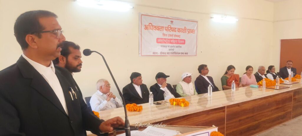 अधिवक्ता परिषद काशी प्रांत की जिला इकाई सोनभद्र ने 13 मार्च शुक्रवार को अंतर्राष्ट्रीय महिला दिवस के अवसर पर “नारी अस्मिता, समानता एवं न्याय” विषय पर संगोष्ठी का आयोजन किया। कार्यक्रम में मुख्य अतिथि वरिष्ठ चिकित्सक डॉ. अनुपमा सिंह, विंध्य कन्या महाविद्यालय की प्राचार्या डॉ. अंजली विक्रम सिंह, विशिष्ठ अतिथि पूनम सिंह, एडवोकेट, अशोक प्रसाद श्रीवास्तव, अध्यक्ष सोनभद्र बार एसोसिएशन, एवं वरिष्ठ समाजसेवी ओमप्रकाश त्रिपाठी उपस्थित रहे। कार्यक्रम का संचालन विनोद कुमार शुक्ल, एडवोकेट एवं महासचिव अधिवक्ता परिषद ने किया, जबकि अध्यक्षता राजीव कुमार सिंह, अध्यक्ष अधिवक्ता परिषद ने संभाली।
