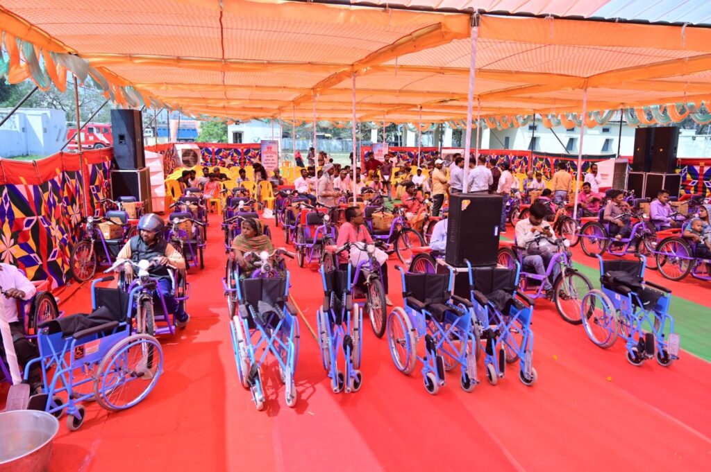 — विभिन्न प्रकार के सहायक उपकरण व्हीलचेयर, बैसाखी, ट्राई साइकिल अन्य उपयोगी उपकरण निःशुल्क किये गये वितरित