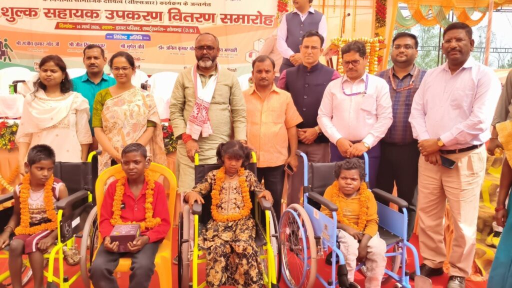 Sonbhadra । इण्डियन आयल कॉर्पाेरेशन लिमिटेड (सीएसआर) के सहयोग से डायट परिसर उरमौरा में दिव्यांगजनों के लिए निःशुल्क सहायक उपकरण वितरण समारोह का आयोजन किया गया। इस कार्यक्रम का उद्देश्य दिव्यांगजनों को आत्मनिर्भर बनाना तथा उनके जीवन को सुगम बनाना है, कार्यक्रम में सदर विधायक भूपेश चौबे जी मुख्य अतिथि के रूप में उपस्थित रहे।