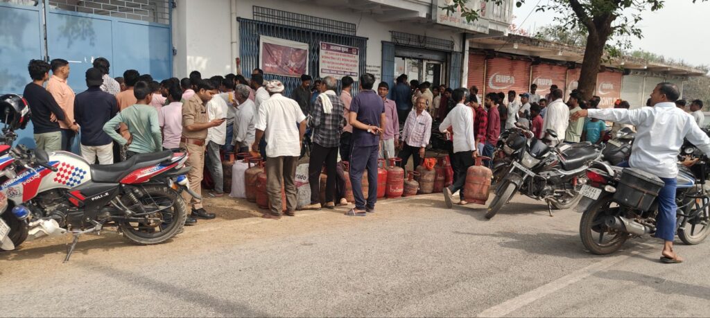 बुधवार की सुबह 6:00 से ही गैस एजेंसी पर गैस सिलेंडर लेने वालों की लंबी कतार लग गई जो लगभग पूरे दिन लग रहा, वहीं पुलिस प्रशासन को भी खड़े होकर लोगों को गैस सिलेंडर वितरण करवाना पड़ा ,जहां लोगों के बीच हल्की खींचातानी भी चलती रही, महंगाई लोग सिलेंडर लेने के लिए पर्ची कटवाने भी लाइन में लग रहे तो कई दर्जन लोग सिलेंडर लेने के लिए पासबुक पैसा एवं डीएसी नंबर साथ में लेकर अपने नंबर का इंतजार करते हुए बढ़ते रहे।