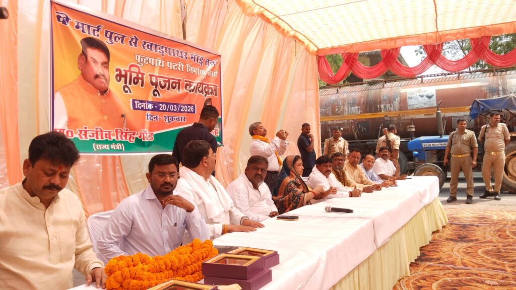 स्थानीय नगर पंचायत क्षेत्र में विकास कार्यों को गति देते हुए वी-मार्ट पुलिया से खाड़पाथर मोड़ तक सड़क की दोनों पटरियों पर कट स्टोन लगाने का कार्य शुरू हो गया है। इस महत्वपूर्ण परियोजना का शुभारंभ शुक्रवार को प्रदेश सरकार के राज्य मंत्री संजीव गोंड़ द्वारा विधिवत भूमि पूजन कर किया गया।
