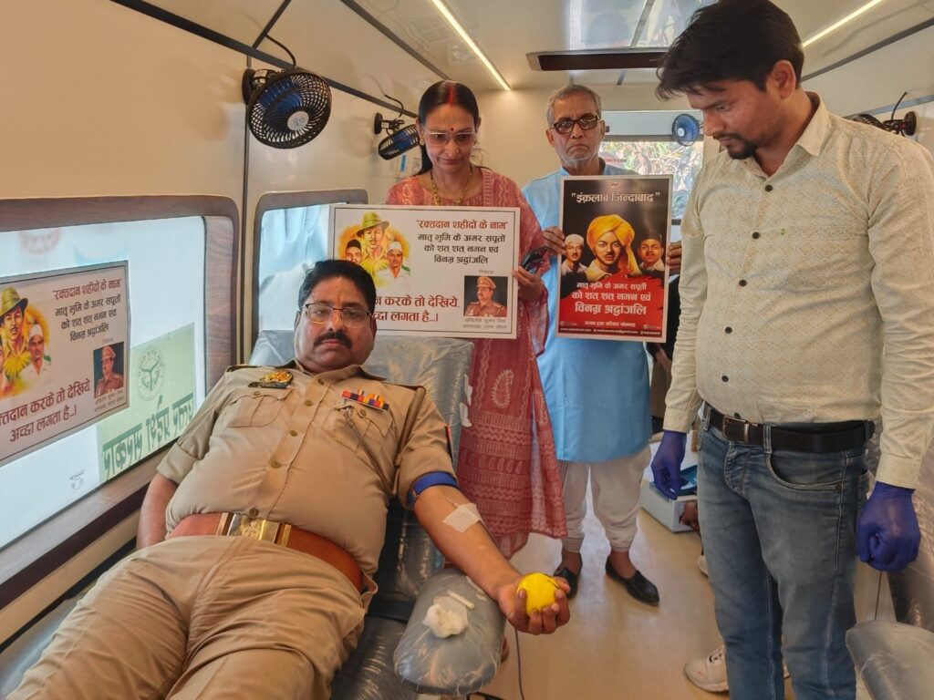 शहीद दिवस की पूर्व संध्या पर दिनांक 22 मार्च 2026 दिन रविवार को समय सायं 3 बजे से 06 बजे तक उत्सव ट्रस्ट एवं थाना चोपन के संयुक तत्वावधान में थाना चोपन के परिसर में आयोजित स्वैच्छिक रक्तदान शिविर में कुल 9 लोगों ने स्वैक्षिक रक्तदान कर शहीद भगत सिंह, राजगुरु एवं सुखदेव को श्रद्धांजलि अर्पित की।