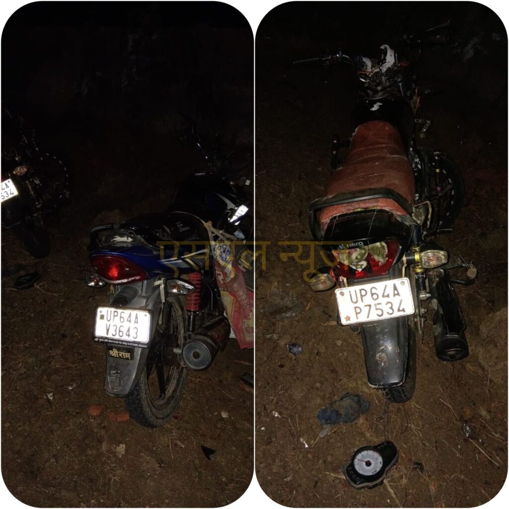 बीती रात करीब 11 बजे थाना करमा क्षेत्रान्तर्गत ग्राम करकी के पास रॉबर्ट्सगंज-मिर्जापुर मुख्य मार्ग पर दो मोटरसाइकिलों (UP64 AV 3643 व UP64 AP 7534) की आमने-सामने टक्कर हो गई। उक्त दुर्घटना में मोटरसाइकिल संख्या UP64 AV 3643 के चालक जय सिंह पुत्र फूलचंद सिंह निवासी कुंभ मोकलपुर, जनपद जौनपुर पत्नी सरिता सिंह निवासी उपरोक्त की मौके पर ही मृत्यु हो गई।