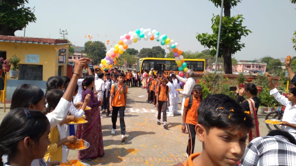 परीक्षा देने पहुंचे भैया-बहनों का विद्यालय परिवार द्वारा पारंपरिक तरीके से पुष्प वर्षा कर स्वागत किया गया। इस विशेष स्वागत ने छात्रों के साथ-साथ उनके अभिभावकों को भी प्रभावित किया और पूरे वातावरण को उत्साहपूर्ण बना दिया। विद्यालय के इस अनूठे स्वागत से छात्रों में आत्मविश्वास और सकारात्मक ऊर्जा का संचार देखने को मिला।विद्यालय प्रबंधन का कहना है कि संस्था का मुख्य उद्देश्य केवल शैक्षणिक ज्ञान प्रदान करना ही नहीं, बल्कि विद्यार्थियों के सर्वांगीण विकास पर भी ध्यान देना है।
