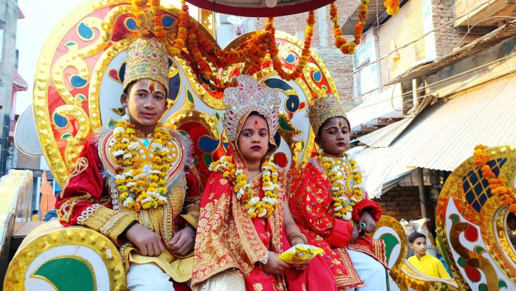 प्रभु के आशीर्वाद से आज भारत एक बार फिर विश्व गुरु बनने की तरफ राह पर अग्रसर है।पूजन कार्यक्रम के बाद नगर में सैकड़ों कार्यकर्ताओं ने भगवान श्रीराम, माता सीता, लक्ष्मण व हनुमान की शोभायात्रा के साथ नगर में चक्रमण भी किया।प्रभारी निरीक्षक देवता नंद सिंह एवं चौकी प्रभारी देवेंद्र प्रताप सिंह के नेतृत्व में सुरक्षा व्यवस्था के कड़े इंतजाम रहे।