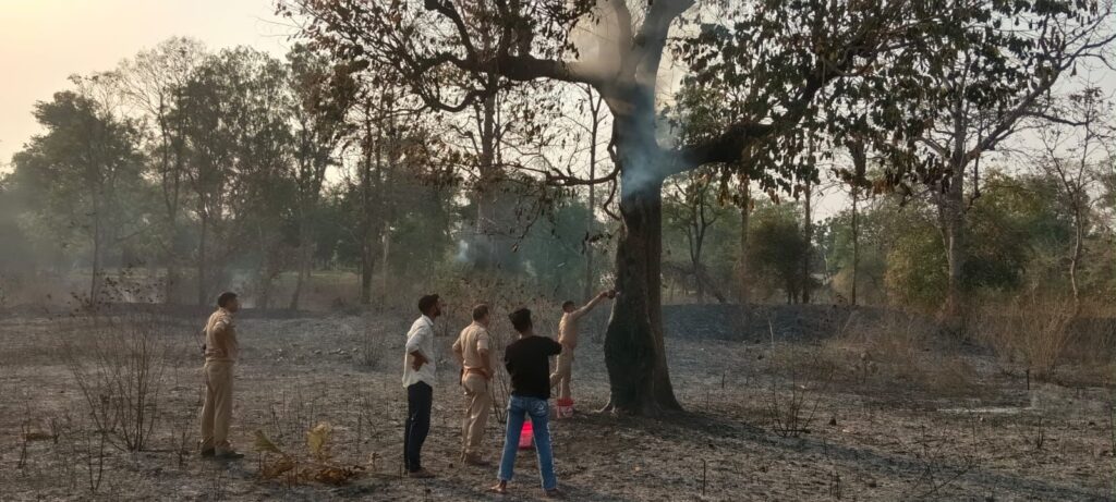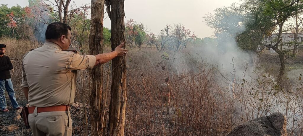 आग की लपटें तेजी से फैलने के कारण कई पेड़ जलकर नष्ट हो गए। हालांकि, पुलिस और स्थानीय लोगों की कड़ी मशक्कत के बाद आग पर काबू पा लिया गया, जिससे एक बड़ी घटना होने से टल गई।