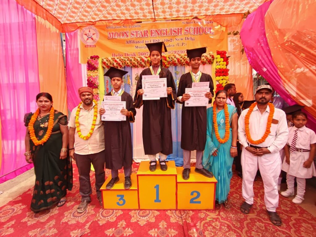 आदिवासी बाहुल्य क्षेत्र म्योरपुर म्योरपुर स्थानीय कस्बा मे स्थित सीबीएससी बोर्ड दिल्ली द्वारा मान्यता प्राप्त विद्यालय मे मून स्टार इंग्लिश स्कूल मे मंगलवार को महावीर जयंती के पावन अवसर पर भव्य एवं गरिमामय कार्यक्रम का आयोजन किया गया। इस शुभ अवसर पर विद्यालय में वार्षिक परिणाम दिवस (रिजल्ट डे) भी हर्षोल्लास के साथ मनाया गया, जिससे पूरे परिसर में उत्सव का माहौल बना रहा।