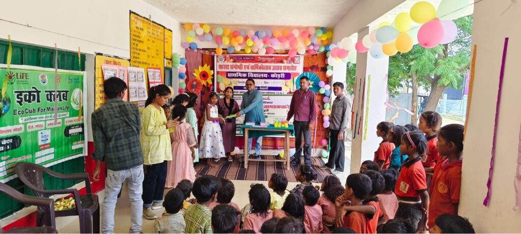 म्योरपुर शिक्षा क्षेत्र के प्राथमिक विद्यालय कोड़री में शनिवार को शारदा संगोष्ठी एवं वार्षिकोत्सव का भव्य आयोजन किया गया। कार्यक्रम का शुभारंभ मां सरस्वती के चित्र पर पुष्प अर्पित कर एवं दीप प्रज्वलित कर किया गया। इस अवसर पर विद्यालय परिसर को आकर्षक ढंग से सजाया गया था, जिससे कार्यक्रम का वातावरण और भी उत्साहपूर्ण हो गया।
