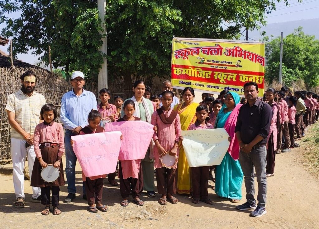 Sonbhadra । आज दिनांक 10 अप्रैल 2026 को कंपोजिट विद्यालय कनछ चोपन सोनभद्र में स्कूल चलो अभियान की रैली हर्षोल्लास के साथ निकाली गई रैली में बच्चों ने बढ़ चढ़ कर प्रतिभाग किया, बच्चों ने विद्यालय परिसर से गांव का भ्रमण करते हुए आधी रोटी खाएंगे फिर भी स्कूल जाएंगे, हम बच्चों का नारा है शिक्षा अधिकार हमारा है।