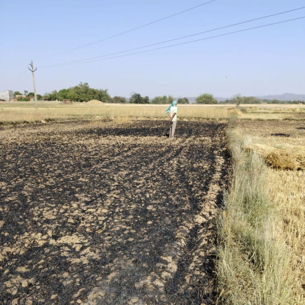 जिससे गेहूं की संपूर्ण फसल जलकर खाक हो गई इससे किसान को काफी आर्थिक क्षति झेलनी पड़ी है।आगलगी की इस घटना से पास-पड़ोस के किसानों में हड़कंप मच गया।जिसकी सूचना विद्युत विभाग और दमकल को देने के पश्चात ग्रामीणों के सहयोग से आग पर काबू पाया गया।