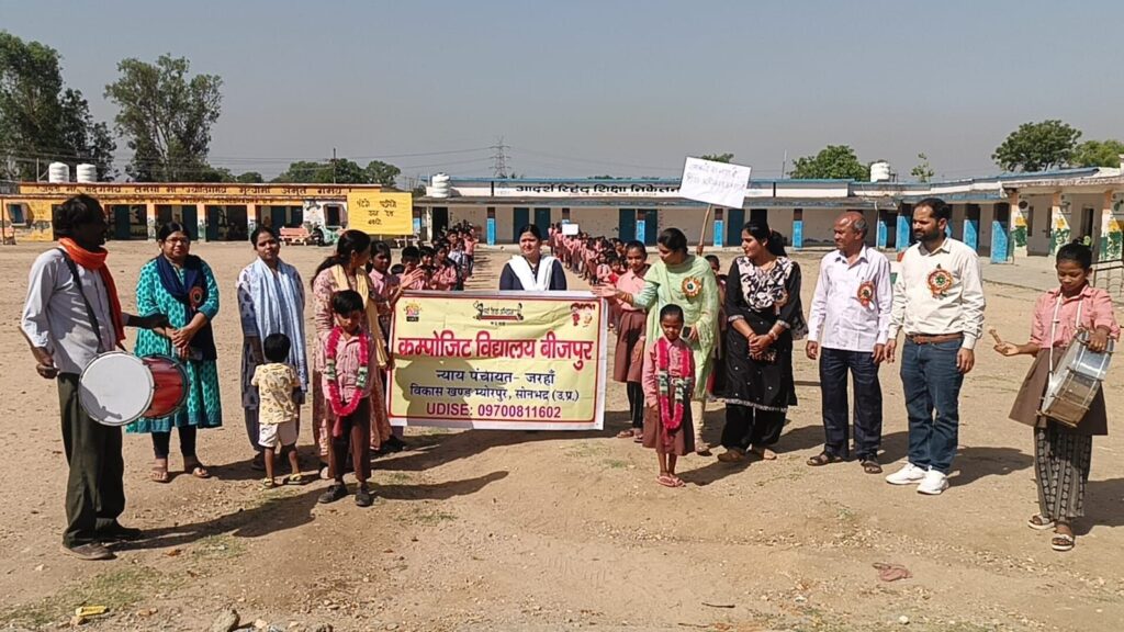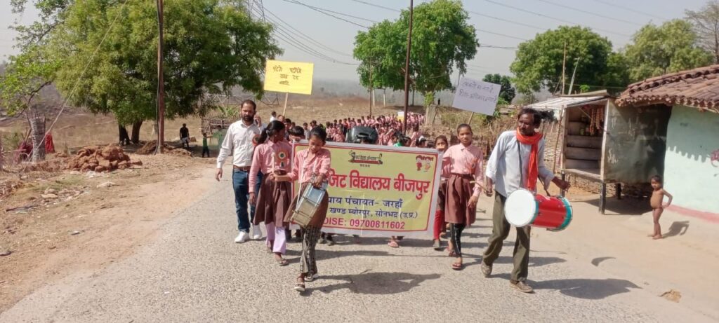 रैली का शुभारंभ प्रभारी प्रधानाध्यापक नेहा श्रीवास्तव और ग्राम प्रधान प्रतिनिधि विश्राम सागर ने छात्र-छात्राओं को तिलक लगाकर और हरी झंडी दिखाकर किया।स्कूली बच्चों की यह टोली विद्यालय परिसर से निकलकर बीजपुर पुनर्वास होते हुए स्थानीय बाजार तक पहुंची।रैली के दौरान बच्चों ने कई प्रेरक नारे लगाए।बाजार के व्यापारियों और अभिभावकों ने भी बच्चों का उत्साहवर्धन किया और इस अभियान में अपनी सहभागिता दर्ज कराई।