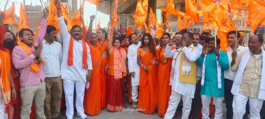विश्व हिंदू महासंघ के 45वें स्थापना दिवस के पावन अवसर पर जनपद सोनभद्र के रॉबर्ट्सगंज में एक भव्य एवं ऐतिहासिक शोभायात्रा का आयोजन किया गया। यह कार्यक्रम जिलाध्यक्ष विजय यादव की अध्यक्षता एवं सफल नेतृत्व में संपन्न हुआ। इस दौरान पूरा शहर भगवा पताकाओं और “जय श्री राम” के गगनभेदी नारों से गुंजायमान हो उठा। शोभायात्रा की शुरुआत रॉबर्ट्सगंज स्थित डंडईत बाबा मंदिर से ढोल-नगाड़ों और उत्साहपूर्ण वातावरण के बीच हुई।