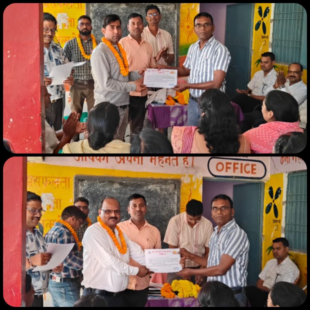 कोन बीआरसी परिसर में आयोजित शिक्षकों के मासिक बैठक के दौरान ब्लॉक में नवीन नामांकन के कार्य में गत वर्ष के सापेक्ष बेहतरीन प्रदर्शन करने वाले 11 प्रभारी प्रधानाध्यपको व 4 संकुल शिक्षकों को खंड शिक्षा अधिकारी विश्वजीत कुमार ने माल्यार्पण करते हुए प्रशस्ति पत्र देकर सम्मानित किया।